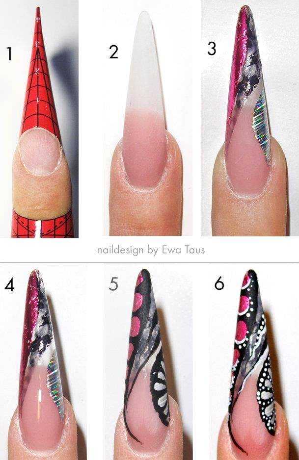 Теперь пошагово выполняем ногти дизайн, картинки которого вы выбрали: