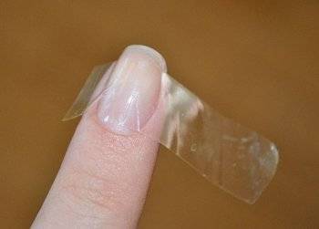 - Подготавливаем ногти. Наращиваем их гелем или акрилом. Натуральную пластину нужно покрыть прозрачным гелем-лаком и дождаться полного высыхания.