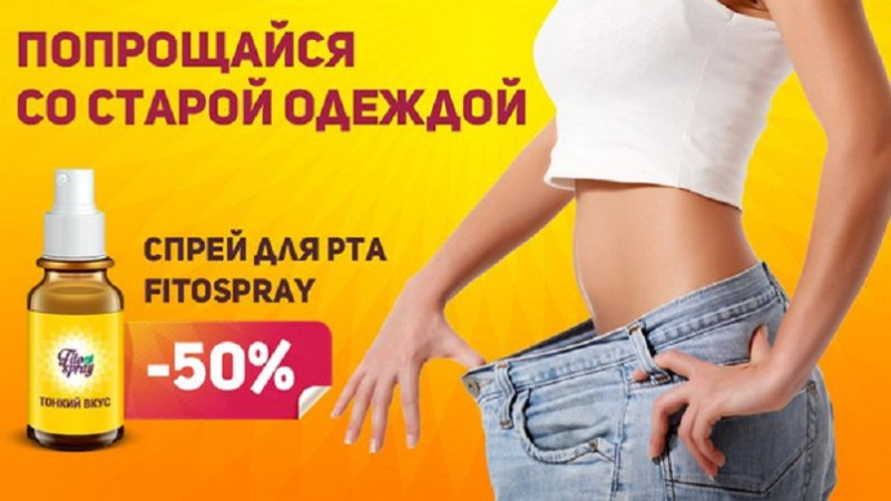 Уже проверенное средство на рынке, FitoSpray является продуктом, который прост в применении и позволяет быстро избавиться от лишних килограммов. Он представлен в формате спрея – распыляйте жидкость в полость рта перед приемом пищи для устранения голода. Также продукт освежает, придает бодрости, способствует похудению. Фитоспрей производится на территории России, рекламируется известным тренером Татьяной Тарасовой.