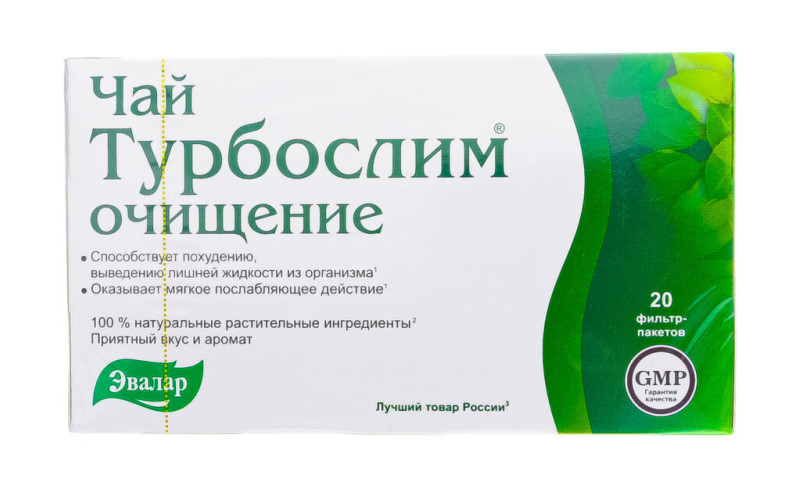 Широко известный чай, направленный на эффективное снижение веса. Изготавливается из сенны, зеленого чая, вишни, перечной мяты, рыльцев кукурузы и экстракта гарцинии. Эти ингредиенты способствуют снижению веса за счет слабительного эффекта, а также благоприятно воздействуют на пищеварение. Тем не менее, чай Турбослим для похудения, может быть противопоказан при наличии некоторых заболеваний, а его употребление должно сопровождаться приемом витаминов.