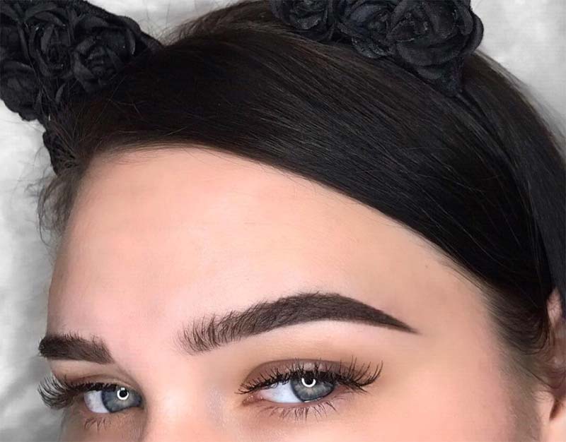 Нельзя делать кончик слишком высоким, иначе взгляд будет выглядеть удивленным. Эта геометрия всегда популярна. Чтобы дуги выглядели аккуратно, их нужно корректировать. Для этого удаляются волоски, делается окрашивание или татуаж.