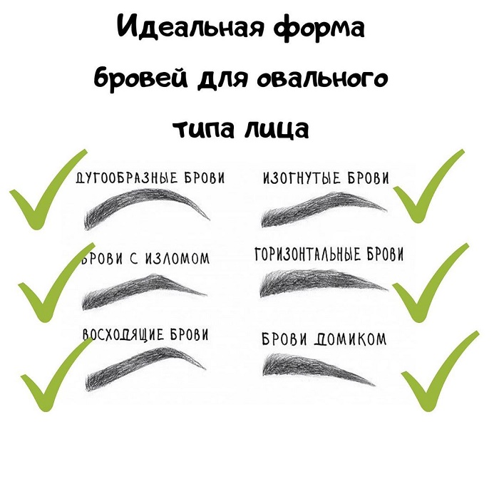Итак, какие брови идут овальному лицу? Подводя итог всему, сказанному выше, отвечаем: допустима любая форма бровей для овального лица. Счастливицы, наделенные такой внешностью, могут совершенно не заботиться о внесении корректив в форму бровей. Единственным условием безукоризненного внешнего вида может быть регулярный уход за бровями, правила которого мы описали в данной статье.