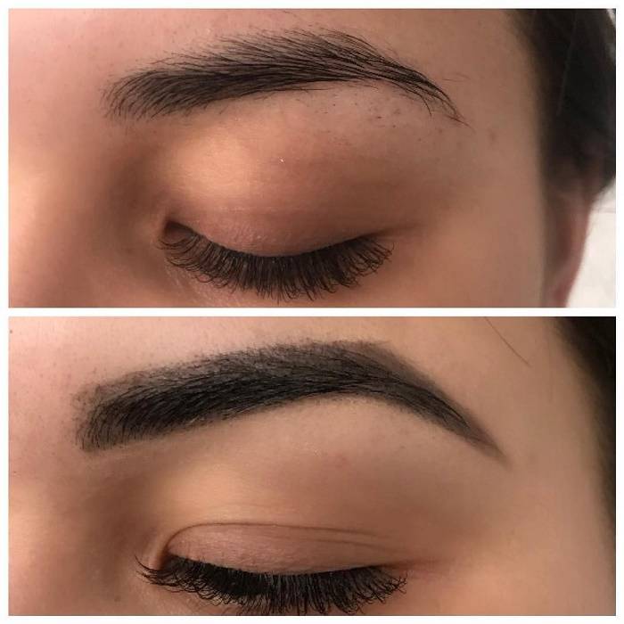 Красивая естественная форма бровей не меняется, а волосы не выдергиваются. Их только слегка закрепляют и причесывают.