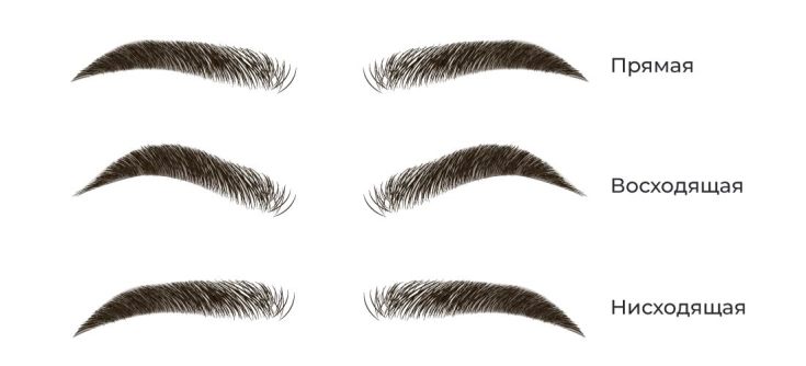 Брови могут быть ровными, придавая чертам лица легкую округлость и визуально смягчая их, с легкой дугой, приподнятыми. Стилисты рекомендуют избегать резких изломов, поскольку так лицо покажется более вытянутым, что идет не всем. Округлая форма при средней ширине смотрится достаточно гармонично. Если лицо имеет более узкие очертания, оптимальной будет прямая форма, брови при этом не должны быть чересчур тонкими. При массивном подбородке внешние края стоит удлинить, особенно если челюстная линия смотрится пропорционально.