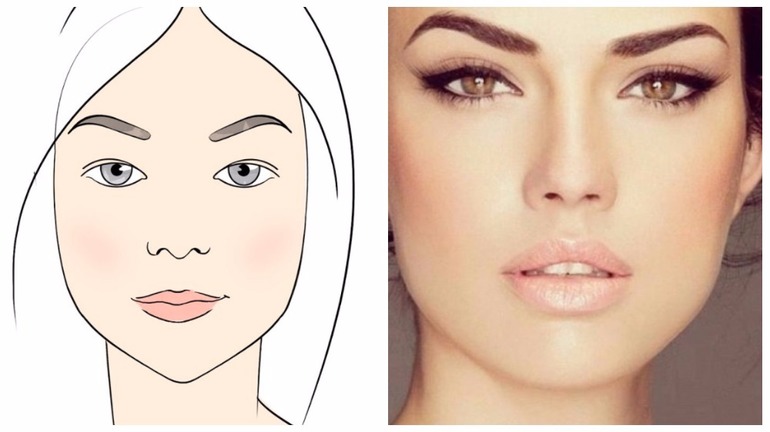 Чтобы сделать гармоничным треугольное лицо (иначе его еще называют сердечком), важно максимально облегчить лоб – самую тяжелую часть, а также смягчить острые углы в области подбородка, скул. В этом помогут дугообразные брови, хвостики должны быть слегка приподняты вверх, а изгиб плавный, равномерный