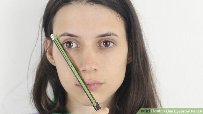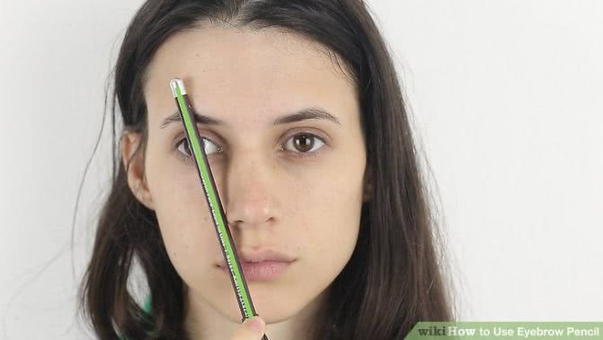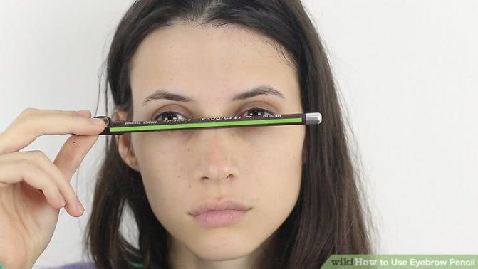 Держите карандаш горизонтально поперек верхней части бровей, чтобы проверить, что они примерно одинаковой высоты. Если это не так, не пытайтесь сразу же выщипать их до того же размера. Вы будете использовать карандаш позже, чтобы построить их до аналогичной высоты.