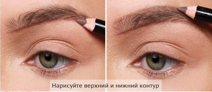 Для начала проводим четкие линии сверху и снизу брови (ее контур), в самом ее середине.