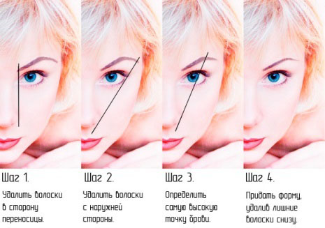 Глаза. Для небольших глаз подходят среднего размера формы, для крупных — широкие. При близко посаженных глазах рекомендуется искусственно расширять расстояние между бровями, посредством удаления лишних волосков в области переносицы. Для широко посаженных — наоборот, не следует сильно разреживать область возле внутренних уголков глаз.