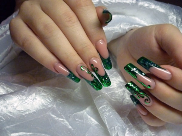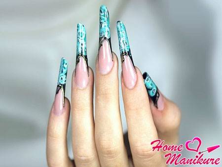 Только достигнуть такой длинны и ярко выраженной формы на натуральном ногте вам не удастся. Зато нарастить пайп с помощью акрила или гель-лака очень удобно. Помимо большой длинны у вас будет широкое поле для создания прекрасных росписей. Дизайн ногтей может зависеть от вашей фантазии, но в большинстве случаев это цветочные и абстрактные завитки. Форма таких ноготков должна быть идеально симметричной, что в домашних условиях сделать сложно, поэтому лучше довериться профессиональным стилистам.