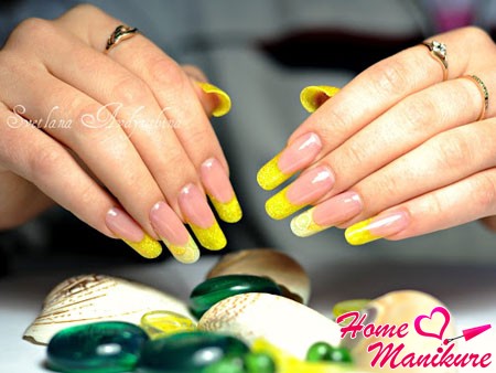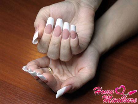 Неважно, белый или цветной, – в любом виде френч только подчеркивает эту уникальную, необычную форму. Френч может быть смоделирован из акрила (геля) или просто накрашен лаком