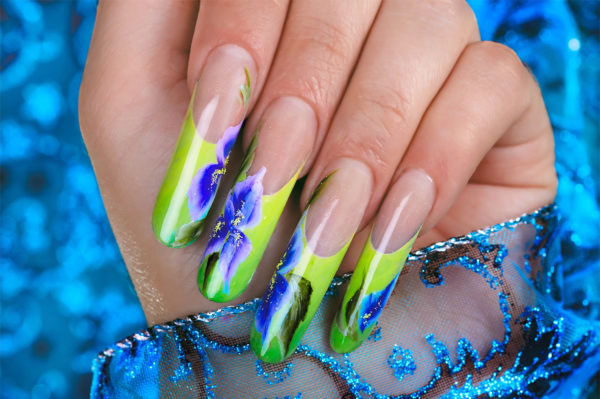 - Китайская роспись – цветы очень красиво смотрятся на нарощенных ногтях. Но найти мастера, который сможет выполнить наращивание и такой рисунок, сложно.