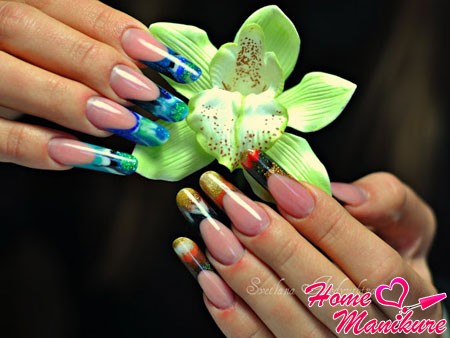 На самом деле, пайп – очень универсальная в плане дизайна и может выдержать любое оформление. Лучше всего подойдет классический френч. Он позволяет должным образом выделить оригинальность данной формы, сделать длинный маникюр более аккуратным на вид. К тому же, френч можно выполнить в любом цветовом варианте: любительницы ярких красок могут без проблем использовать насыщенные оттенки.