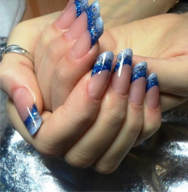 - Градиент (омбре) и втирка – шикарное решение для дизайна длинных ногтей.