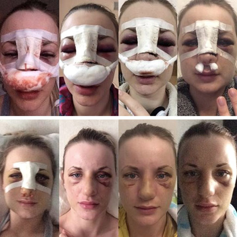 После проведения ринопластики, на носу и вокруг его области, как привило, образовываются отеки и гематомы, которые обычно сходят через две недели. После операции пациенту на область носа накладывается специальная фиксирующая повязка, которую необходимо носить в течение десяти дней. Также в нос будут вставлены тампоны, которые предотвратят кровотечения, так что некоторое время пациент не сможет дышать носом.