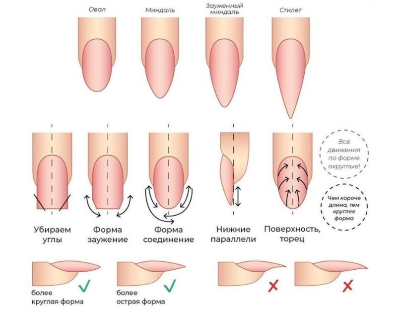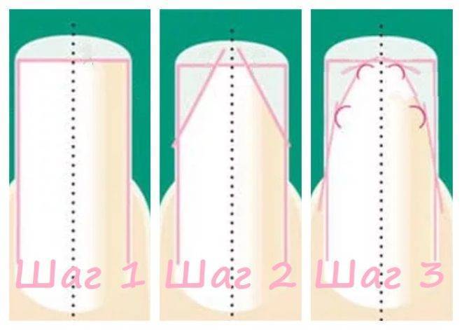 Схема опила зависит от выбранной формы ногтей.