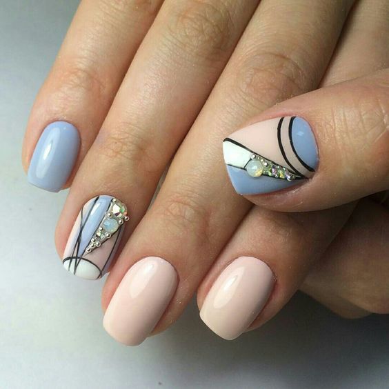 Геометрия плюс нюд на ногтях разной длины
