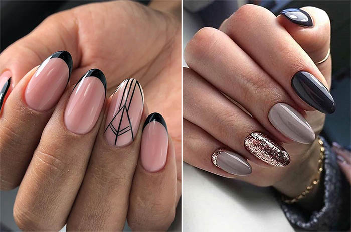 - французский маникюр с темными краями;