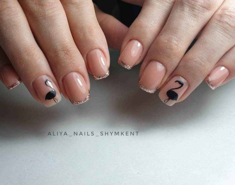 Самый популярный дизайн 2019 года – классический френч. Но вовсе не обязательно строго придерживаться правил его создания. Небольшой рисунок станет стильным дополнением элегантного дизайна. Главное – подобрать наиболее оптимальный вариант исходя из личных пожеланий.