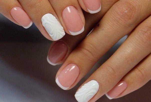 Использование молочных, бежевых, персиковых цветов и классическую прорисовку улыбки. Стоит разбавить небольшим количеством украшений, фольги или рисунков.