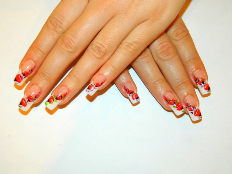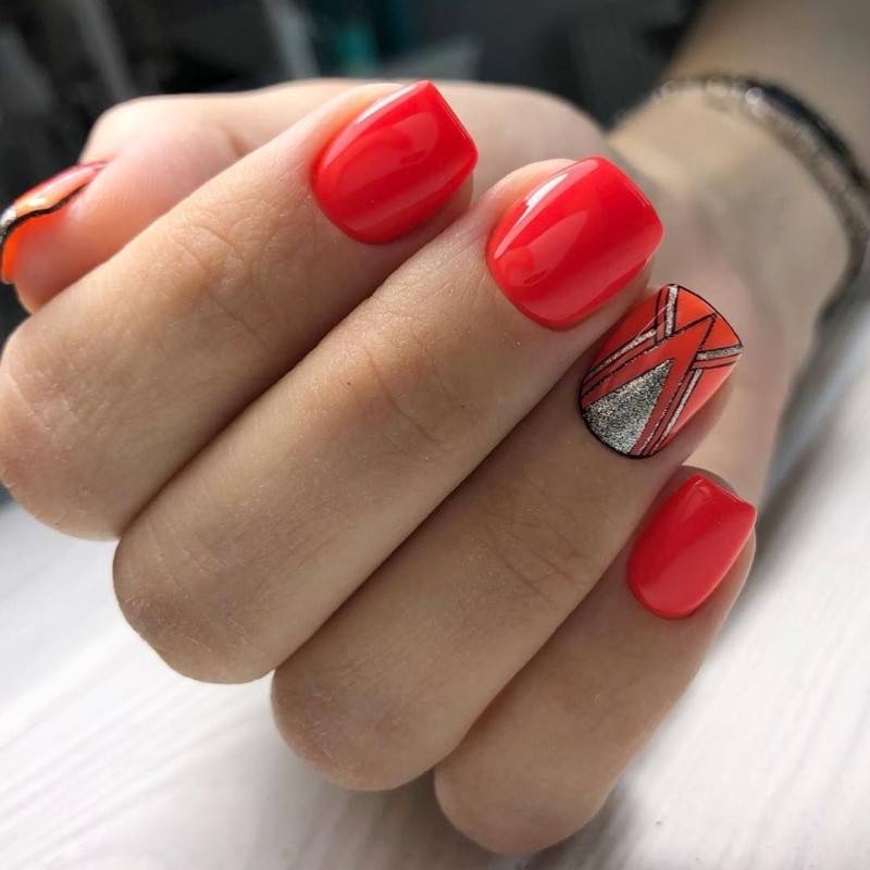 - украшение рисунком одного-двух ногтей в виде кружевных узоров белым или красным лаком;