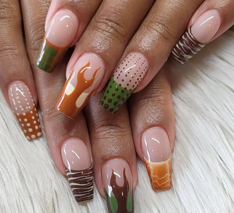 Возможность для полета фантазии, а главное подходит практически любой форме ногтей. Главное, чтобы все выглядело гармонично и не было перебора с количеством использования цветов.