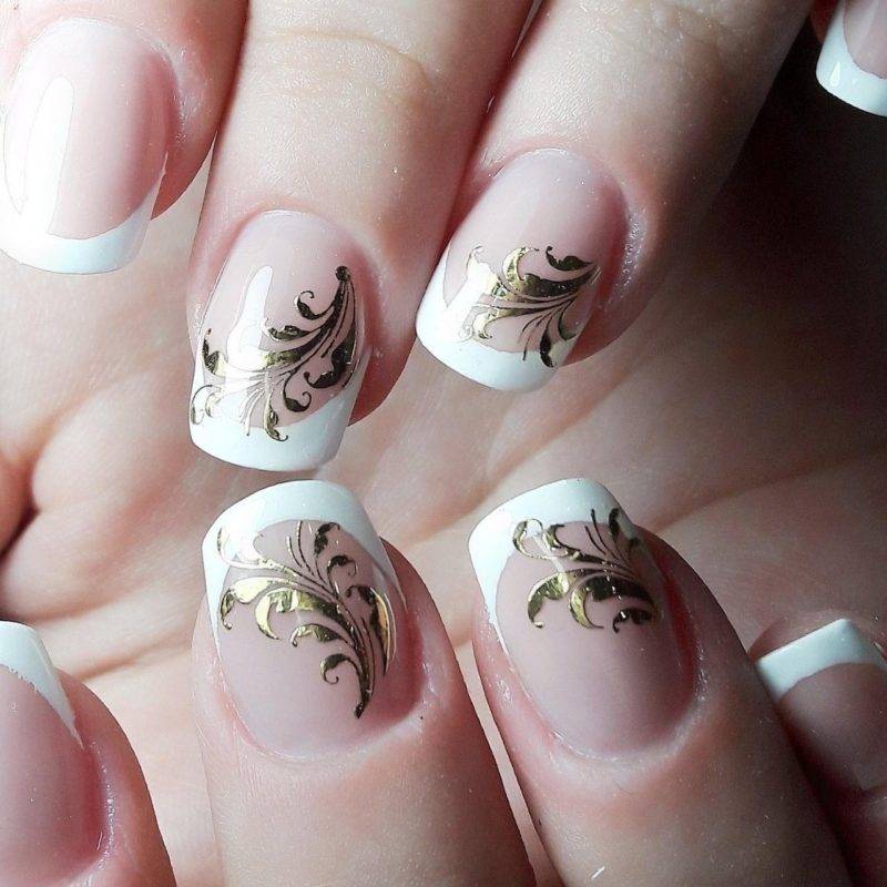 Согласно мнению экспертов, лучше всего смотрится маникюр – белый френч с рисунком – на коротких ногтях квадратной формы. Но можно поэкспериментировать и с другими видами. К примеру, остренькой или овальной.