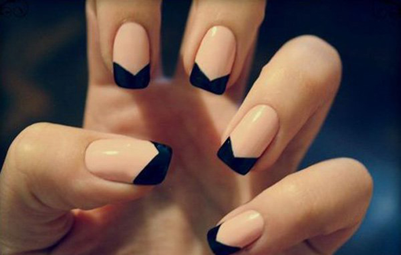 Классические варианты такого типа дизайна выглядят достаточно пресно и уныло. Проявив креативное мышление и включив фантазию, можно создать необыкновенный дизайн ноготков. Треугольный дизайн подходит для удлиненных ногтей.