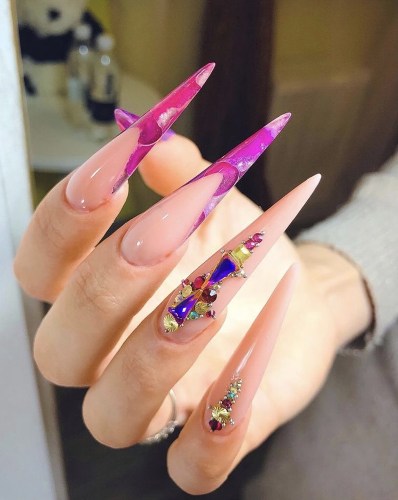 Подходит практически всем, возможность попробовать «длину» и поэкспериментировать с яркими цветовыми решениями. Попробовать стемпинг, паутинку, втирку и прочие идеи дизайна.