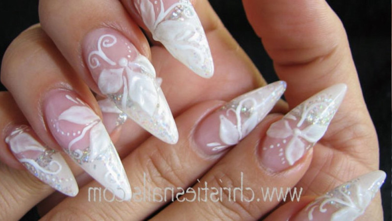 Интересный вариант украшения к торжественной церемонии использование витиеватых узоров и кружева. Руки будут смотреться нежно и элегантно, если использовать трехмерные рисунки. Весной можно добавить в композицию блестящие камушки и полоски из фольги. В летнее время нежный образ дополнят сверкающие нити и бусинки.