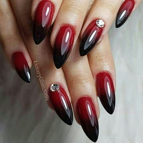 Эффектно и шикарно выглядит френч на миндалевидных ногтях, дополненный стразами. Стразы придадут такому маникюру визуальный объем и роскошь