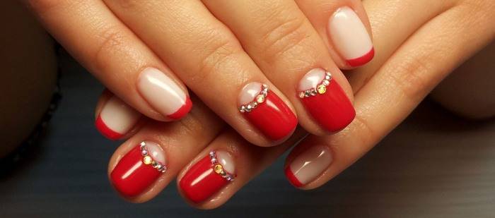 Длинные ноготки и французский маникюр в красно-белом цвете