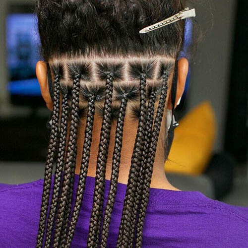 Располагаться они могут как по горизонтали, так и диагонально, в виде треугольника, идущего от висков к затылку. Обычно плетут от 7 до 12 косичек.
