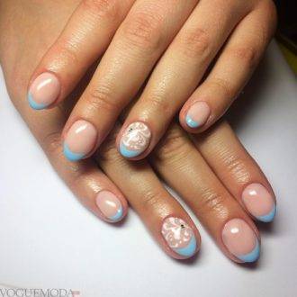 | свадебный френч | Дизайн украшается различными элементами: кружево, вензеля, лепка, стразы, жемчужины, маникюрные ленты и многое другое. |