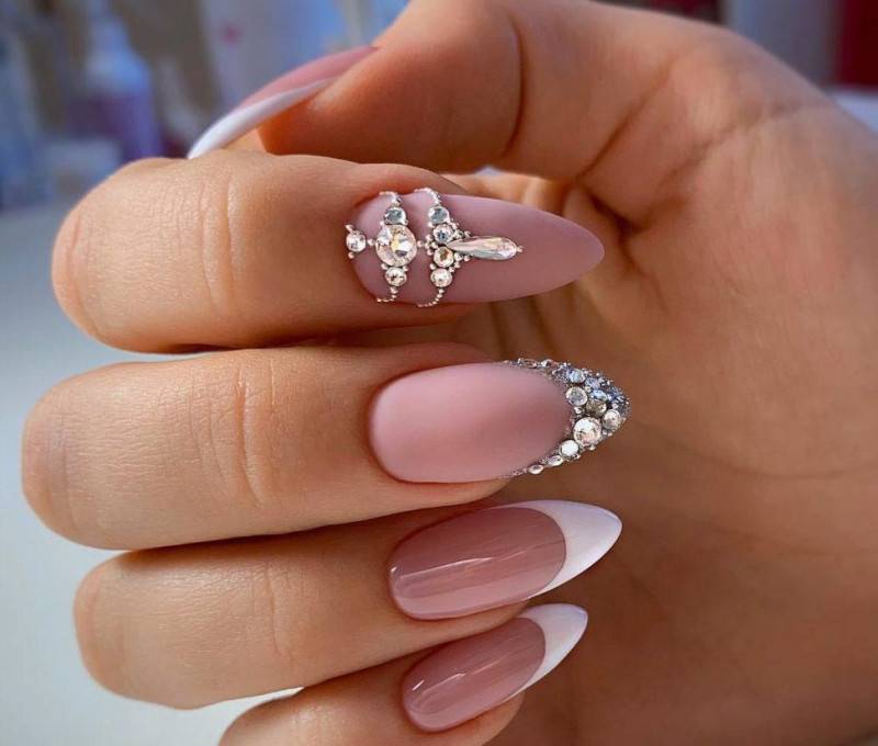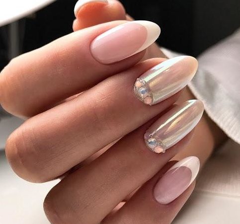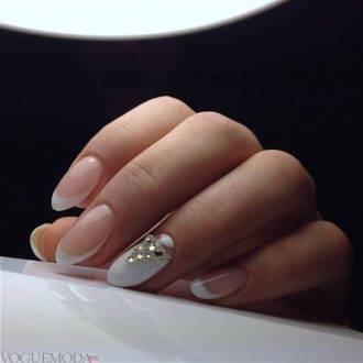 свадебный маникюр френч 2018 с декором стразы