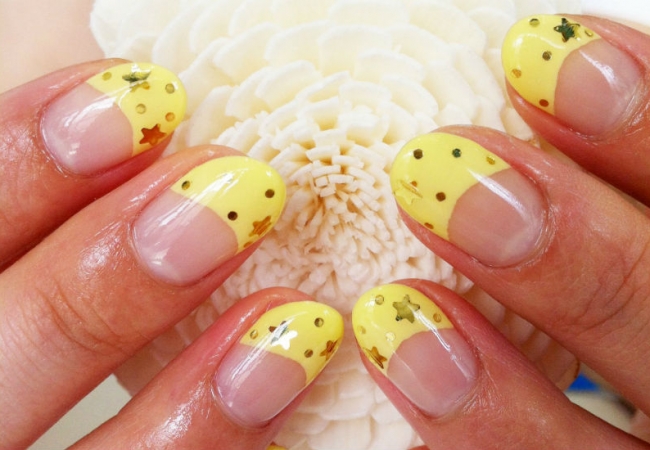 Декорированная линия улыбки блестками и мерцающей пылью, сделала французский маникюр самым нарядным дизайном в стиле френч. К тому же эффект звездного блеска делает дизайн ярким, модным, стильным и считается прекрасным решением для веселой вечеринке и шумного праздника. Для выполнения френч – миллениума необходимо помимо стандартного маникюрного набора и лаков необходимой палитры, иметь при себе жидкие или сухие блестки, гель или акрил.