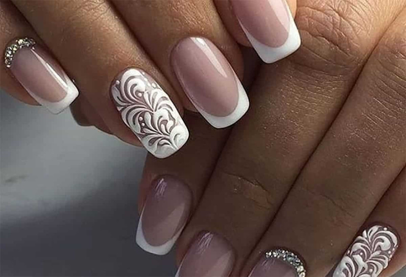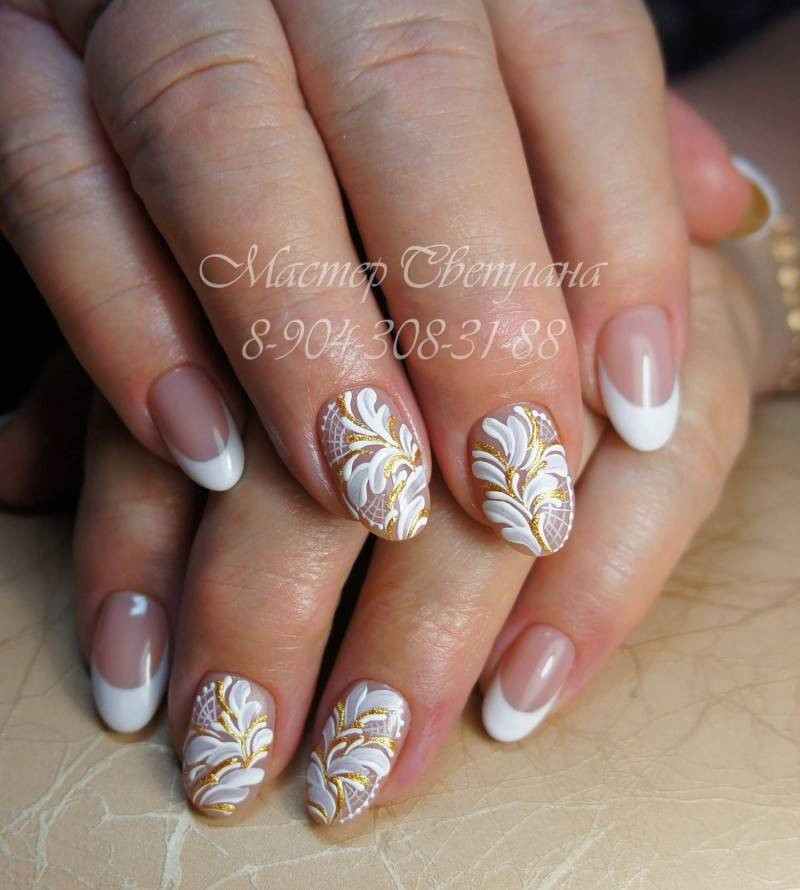 свадебный маникюр френч 2018 с узором