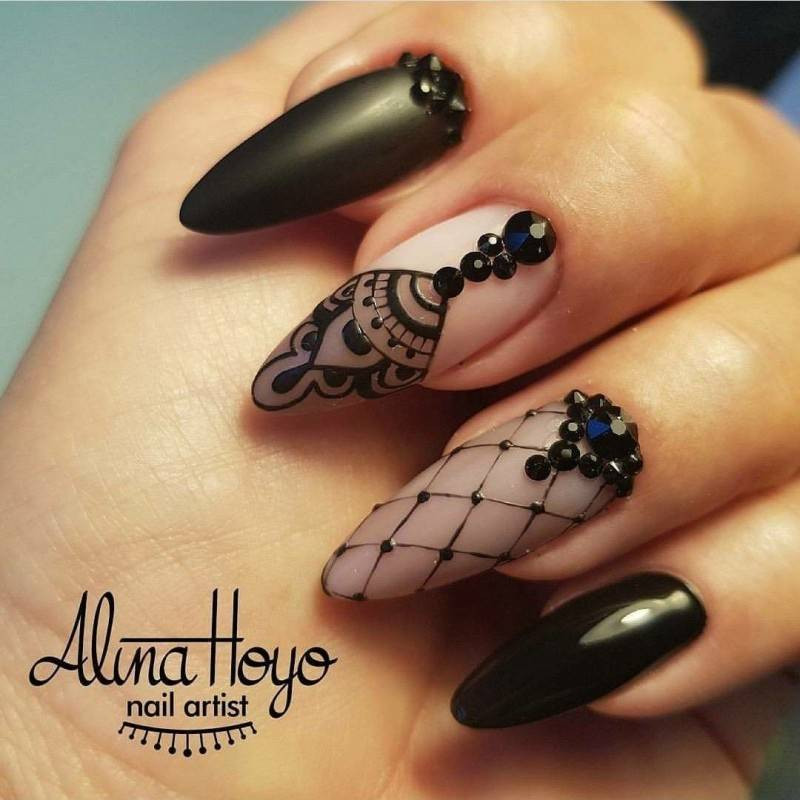 Здесь могут быть задействованы сложные, переходящие рисунки, множество декора, не один цвета лака, техника обмре или градиент. Нередко их украшает акварельная техника и даже объемная лепка.