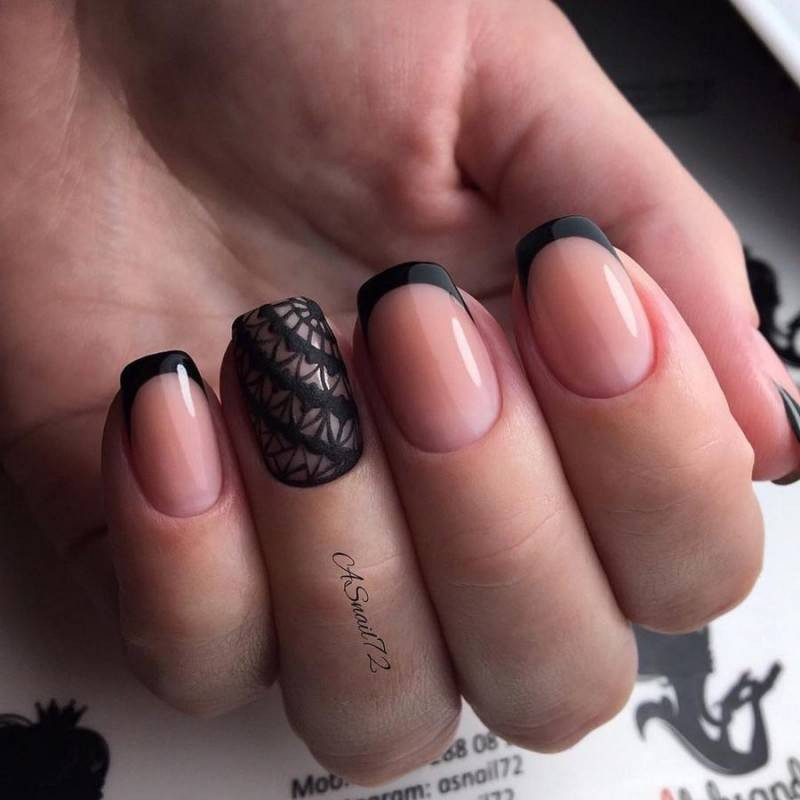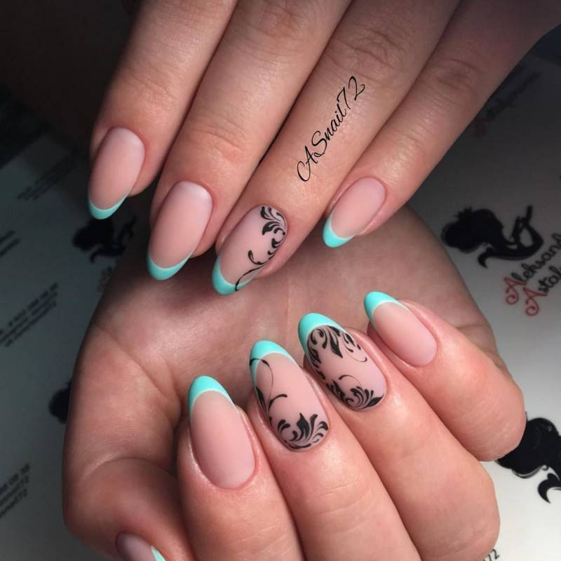 Если вам нужно нечто особенное, на важное мероприятие в вашей жизни, то лучше подобрать френч с дизайном. В подобном виде продумано все: от подбора базы под лаки, вплоть до верхнего финишного слоя