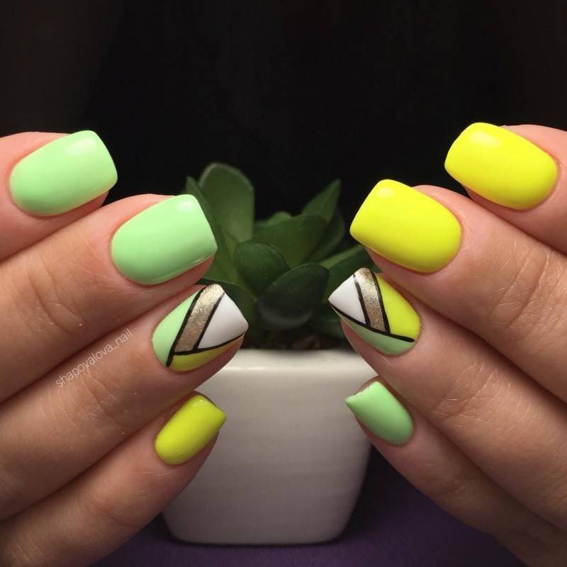 | твист | Кончик ногтя раскрашивается в различные оттенки. Это могут быть геометрические полоски или разноцветные волны. |