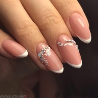 свадебный маникюр френч 2018 с украшением
