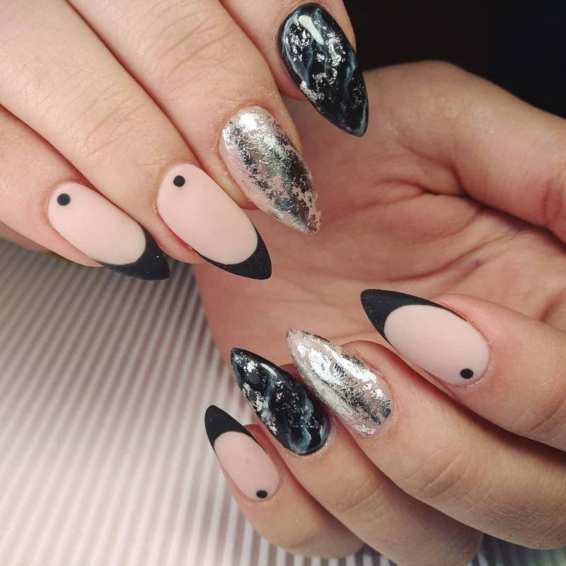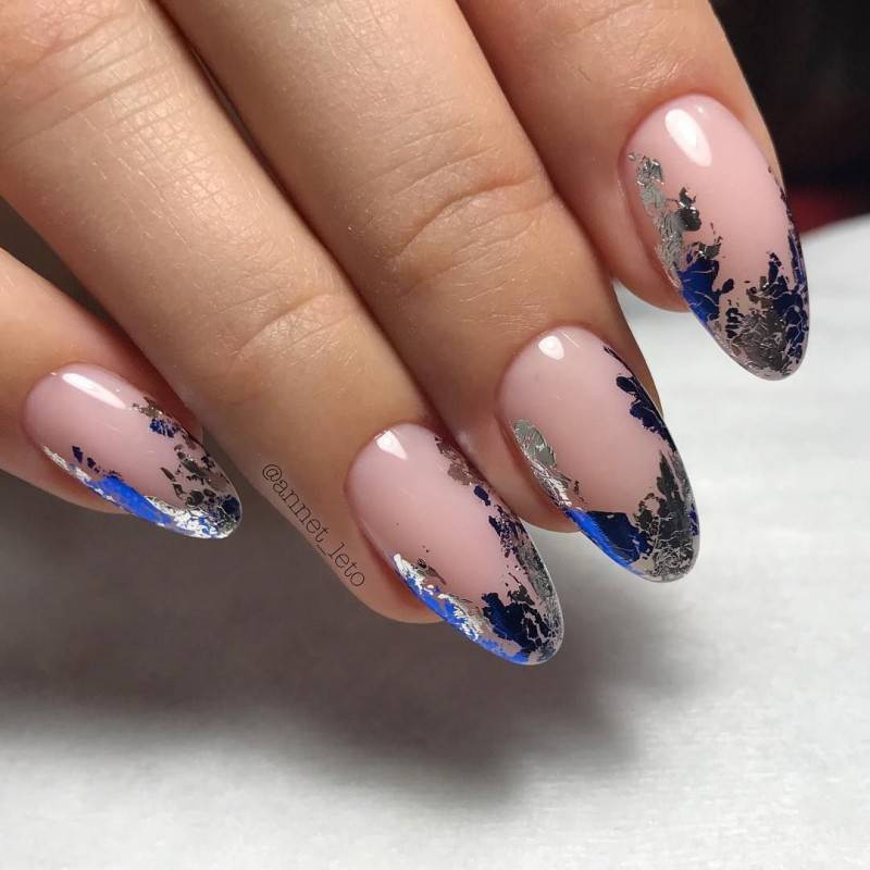 | minx | Кончик ногтя приобретает зеркальный оттенок. Можно воспользоваться фольгой, маникюрной лентой или специальными наклейками. |