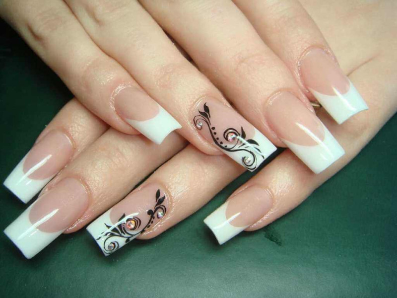 | художественный французский маникюр | Пальчики расписываются кружевом, ажурными завитками или тематическими узорами. |
