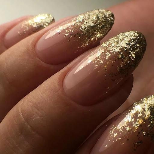| градиент блестками | На кончике ногтя концентрируется большое количество блесток, которые сходят на нет у середины ногтя. |