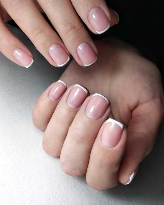 На самом деле французский маникюр на короткие ногти можно делать при любой форме. Так как такой дизайн имеет огромное количество всевозможных стилей.
