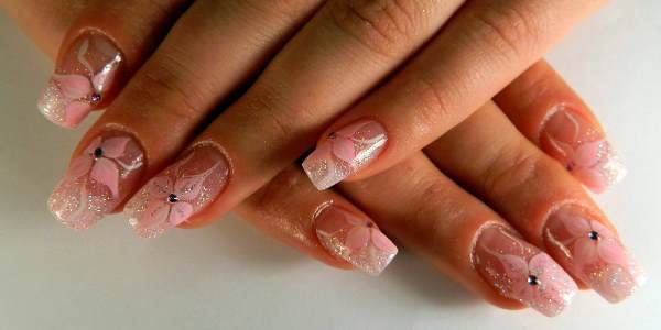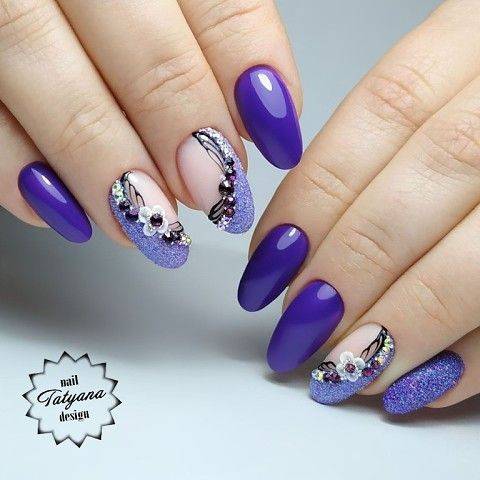Маникюр с блестками имеет свои особенности в зависимости от длины ногтей. Например: