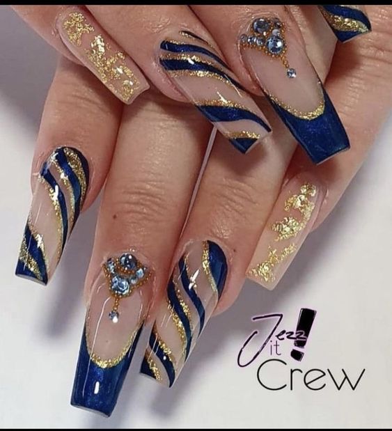 - Полоску на конце рекомендуется сделать на основе серебристых или золотистых блесток, хотя при желании Вы можете использовать стразы или втирки для оформления.