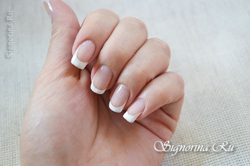 - Покрываем ногтевые пластины топом шеллак, и френч готов.