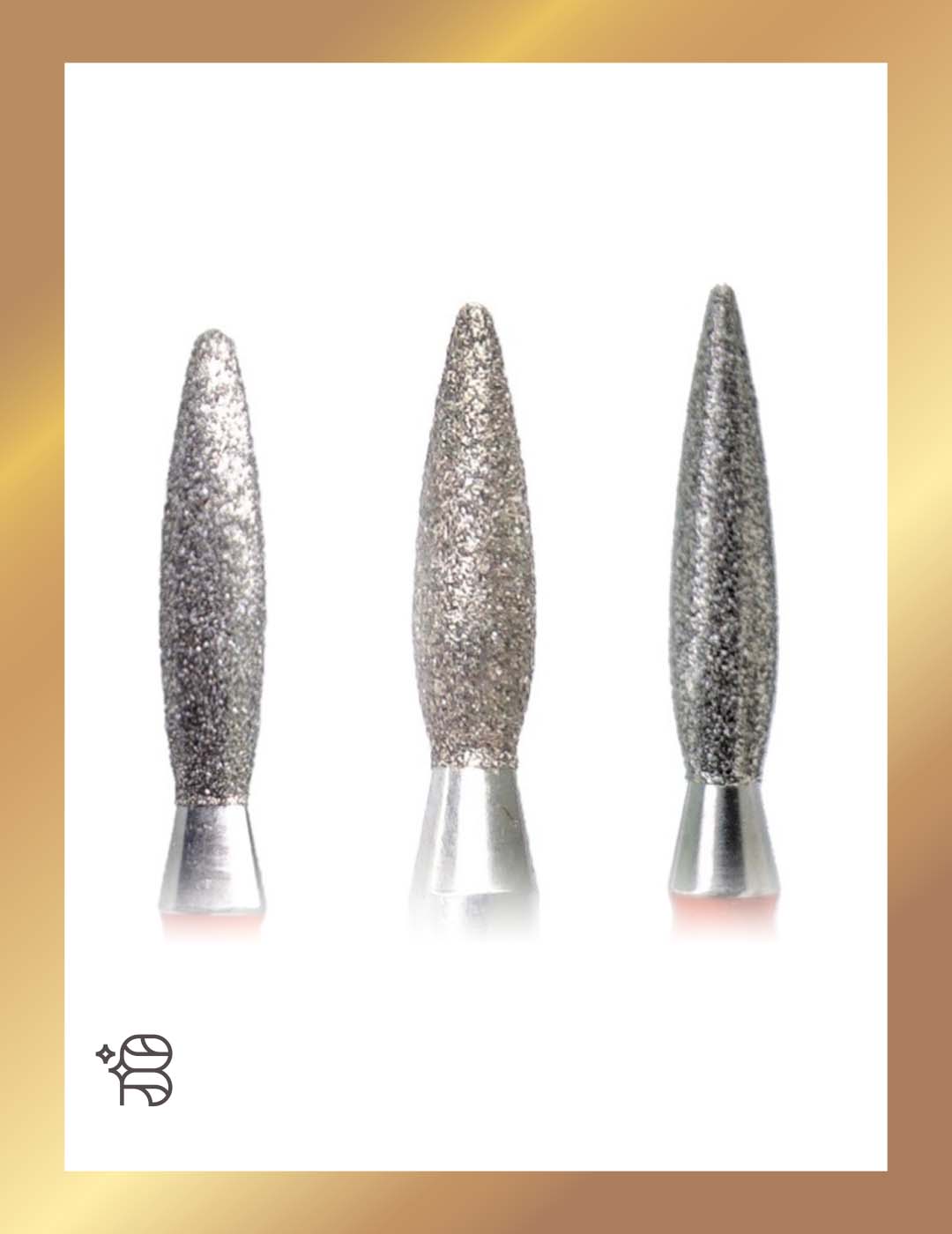 Расширяющие насадки необходимы для глубокого проникновения в пространство между ногтем и кожей. Пуля за счёт тонкого «носика» проникает внутрь пазух, а «пузом» расширяет область. Открывшуюся полость нужно зачищать другими фрезами.