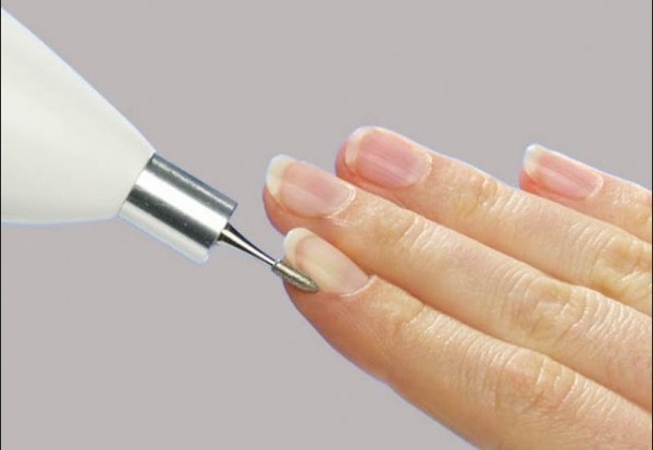 Всё конструктивно продумано: пользователь держит ручку, на конце которой расположен вращающийся вал. На нем устанавливаются различные насадки-фрезы. Достаточно подобрать необходимую (по форме, абразивности и другим параметрам), чтобы оперативно и безболезненно обработать необходимый участок.