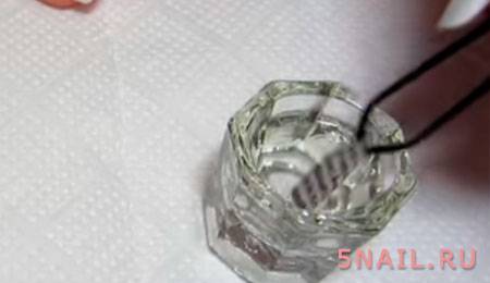 4. Заполните импровизированную ванночку жидкостью на основе спирта и опустите туда ноготь на несколько секунд (до 10).